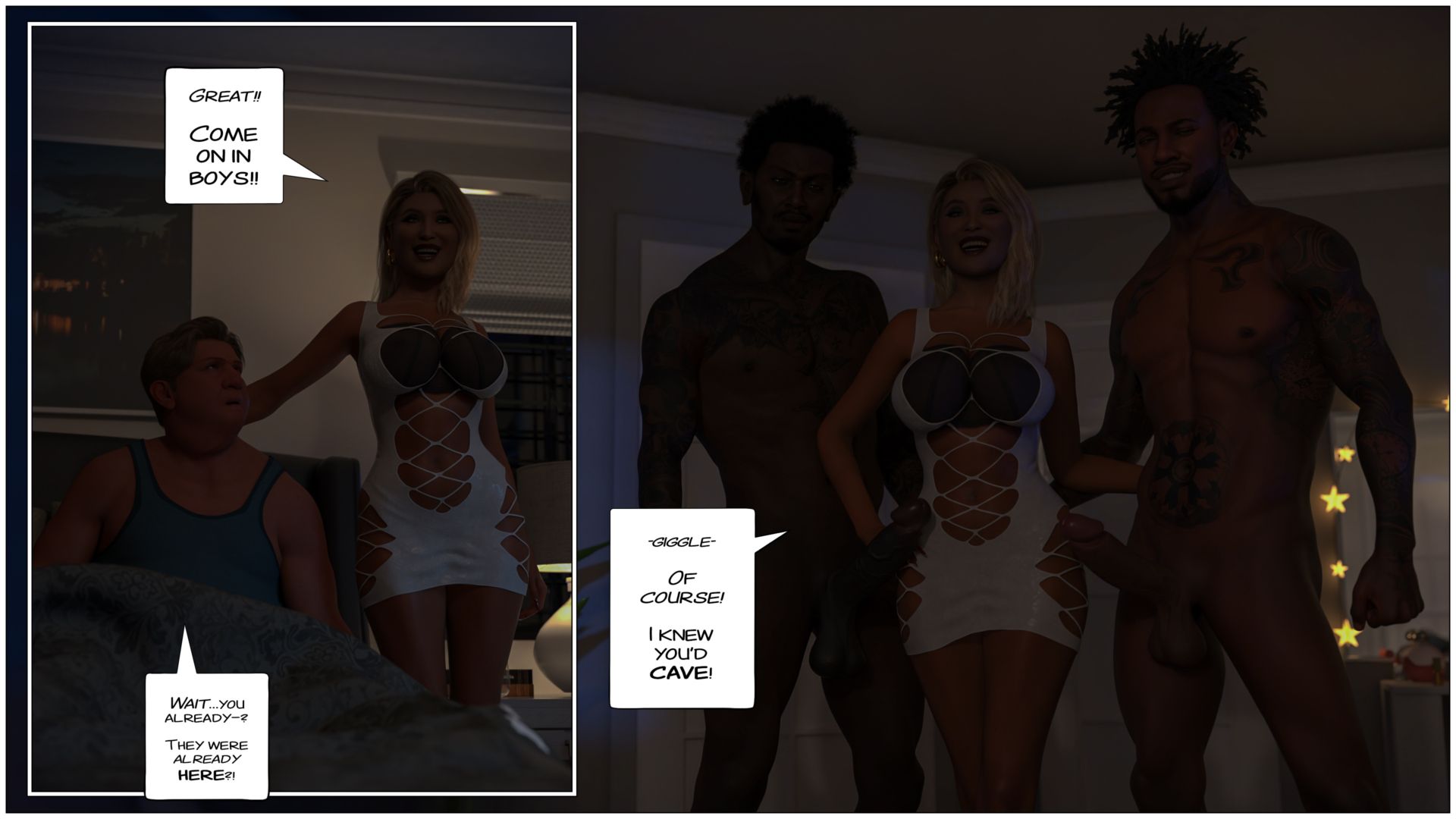 3D, Blowjob, Cheating, Dark skin, Interracial